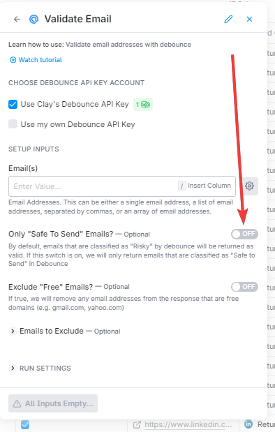 If you add a validation provider to check the emails, some of them have the option to only return "safe to send" emails, the team will add that toggle on/off option to the waterfall soon but we'll default it to "on" so it reduces the bounce rates as much as possible.