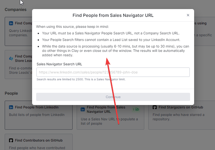 thanks for checking! i have 1 more question before i think im good, i have been using the clay chrome extension to import leads from my sales navigator (the Find People from Sales Navigator URL template does not work when i try it, nothing gets populated in tables) but i am noticing that it is not getting the contact info accurately. It imports the linkedin person and company profile but only the link, it does not show the profile details i can add as a column like company url, i would have to enrich the data for that and spend credits to do so, it has combined information like job title and company name in 1 column instead of separate. How can i get my sales navigator leads imported to clay without having to enrich it with data that should have already been imported? any help you provide would be greatly appreciated