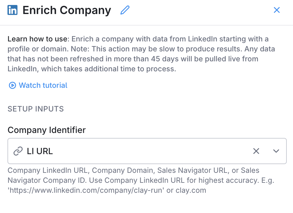 Hey Aida, sorry for the delay! Thanks for sharing more details. In this instance, it is not possible to edit the wrong one and correct it to get the right information without adding a new enrichment. The error is with the domain option for enrichment not giving accurate results in that specific row. One way to make it more seamless would be to set a rule/formula that helps you automatically flag a row if a company does not match with the company name field in the LI enrichment. Set it up to run a google/web search (xyz.com + LinkedIn or Company Name + LinkedIn) to get the correct LI url and enrich with that in a separate column.
