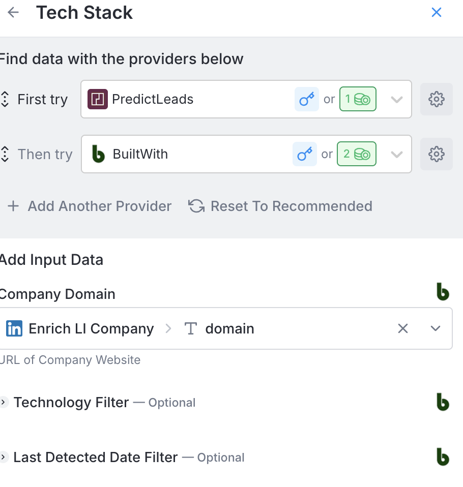 When utilizing Builtwith for enriching Tech Stack Data there's an option to set a Technology filter. This then trickles down to Predictleads if the data has not been found.