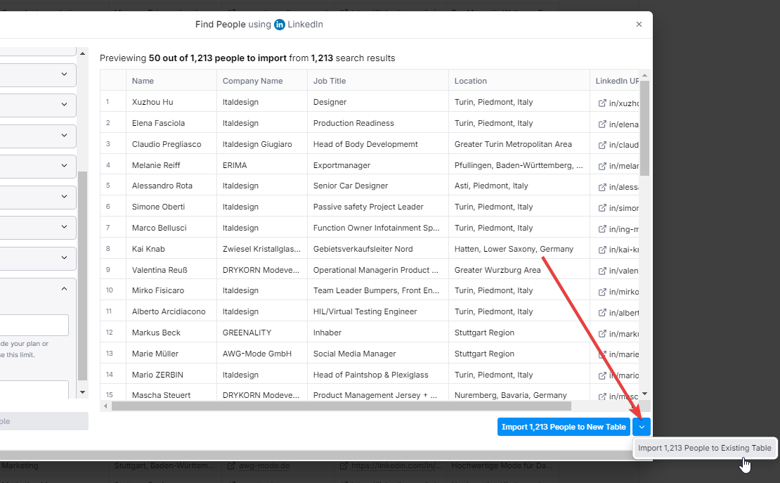 Ahh, thanks for following up! So to clarify, you were trying to "edit" your initial search to include more or different companies and import these people to the same people table?We currently don't have the option to edit any previous searches yet, but you can still run new searches and import to an existing table if that helps. We're looking into the option to edit at some point though. Hope this helps!